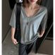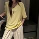 Sommer Koreanisches Oversized T-Shirt mit tief angesetzten Schultern und V-Ausschnitt, kurzärmelig, für Damen, Basic-Oberbekleidung, High-End-Oberteil im Lazy-Style