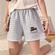 Sommer-Pyjamahose mit Karomuster, für Damen, Sommer, Wolken-Baumwolle, dünne Strandshorts, lässige Heimhose – L