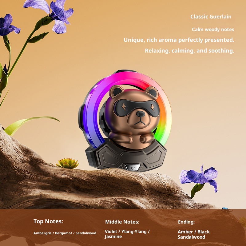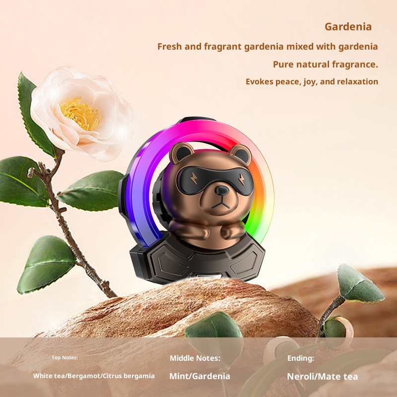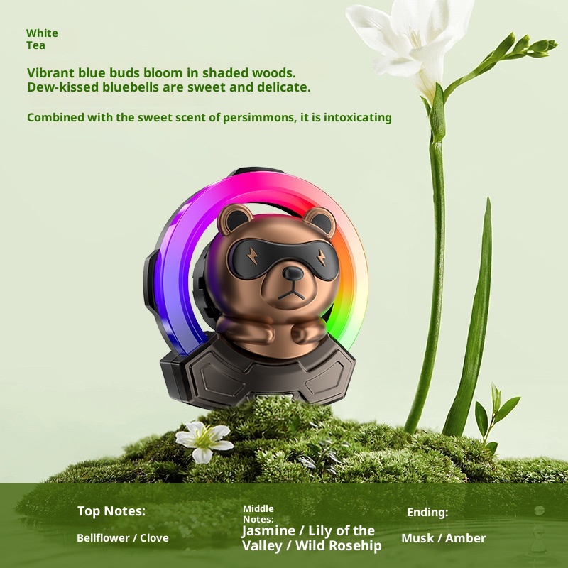 Geräuschaufnahme, Raumluft, Duft aus der Lüftungsöffnung, Autoinnenraum, Rhythmuslicht, leuchtende Brille, Bärendekoration