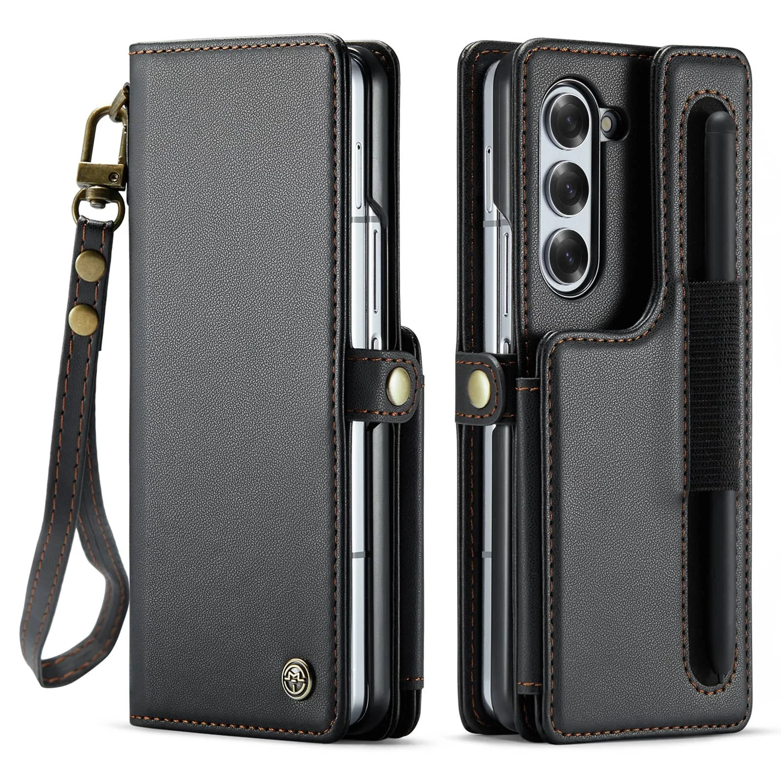 Pen Holder Slot RFID Blocking Wallet Cards Leather Phone Case for Samsung Galaxy Z Fold 6 5G Hand Strap Stand Bag Purse Cover