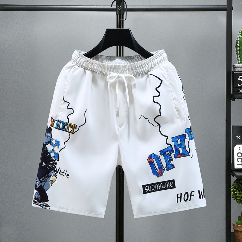 Summer Ice Herren bedruckte Shorts, schnell trocknende Hose, modische Freizeit-Caprihose, Netzrot, Strandmode