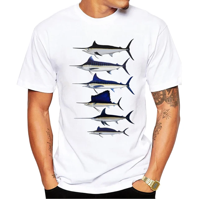 TEEHUB Mode Hochseefischen Herren T-Shirt Billfish Bedrucktes Haruku T-Shirt Kurzarm T-Shirts Cooles T-Shirt