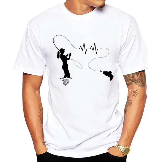 TEEHUB Neuestes Herren-T-Shirt mit Aufdruck „Angeln mit Herzschlag“ für den Sommer, Basic-Art-T-Shirts, kurzärmelig, O-Ausschnitt, lustige T-Shirts