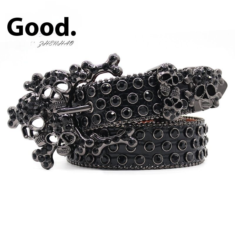 Totenkopf-Strass mit Strasssteinen eingelegt, personalisierte Mode, Hundert-Pagoden-Trend, übertriebener Gürtel, Luxus
