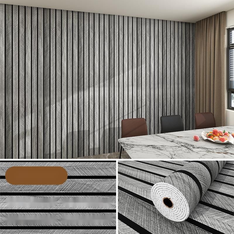 Thickened Self-Adhesive Imitation Grid Wall Stickers Waterproof Moisture-Proof Wood Grain Living Room TV Background Wall Decoration Wallpaper
