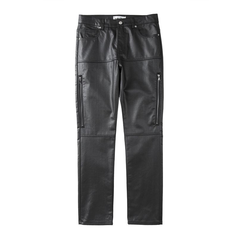 Vibe Style Zipper Pocket Waxed Casual Pants Men's High Street Trendy Slim Straight Pants Pencil Pants Skinny Pants