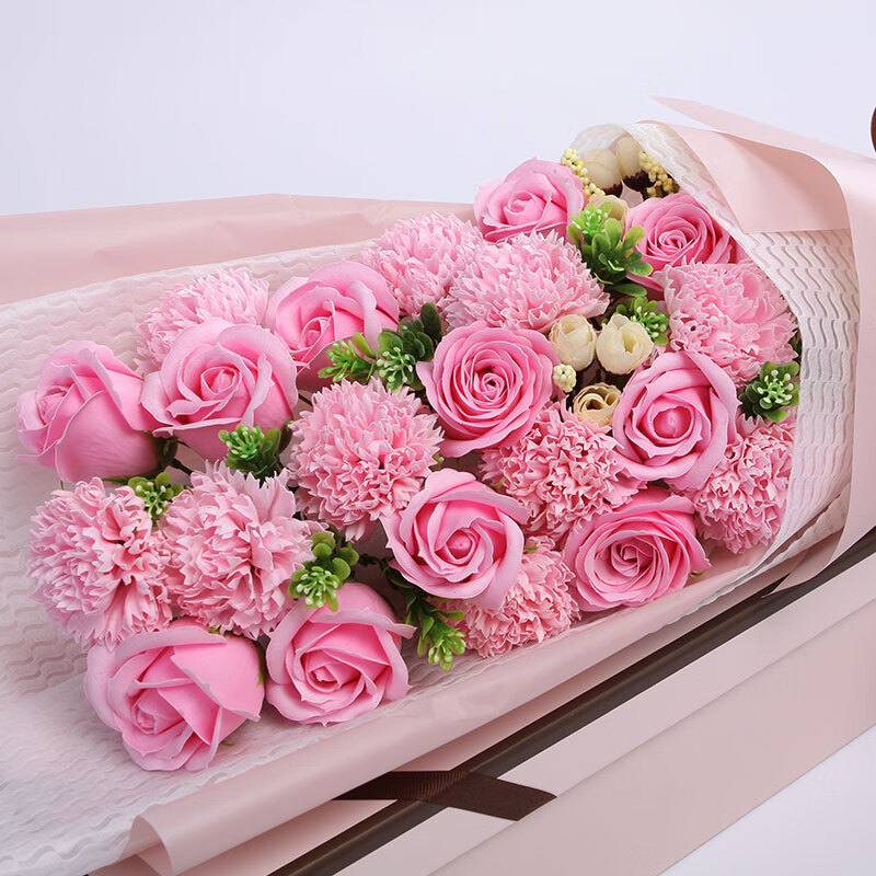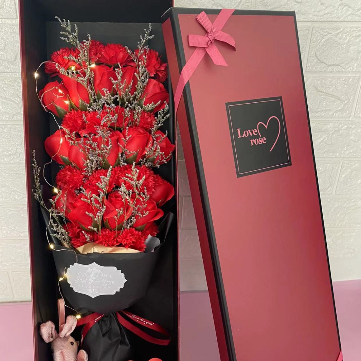 Weihnachtsgeschenke: Rosen-Nelken-Strauß in Geschenkbox, Seifenblume, Valentinstagsgeschenk, Geburtstagsgeschenk, Geschenk für die Freundin, Geschenk für Internet-Prominente