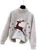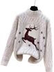 Weihnachtspullover für Damen, modischer Pullover mit halbgeschlossenem Kragen und langen Ärmeln, mit Rentier-Jacquard-Strickmuster