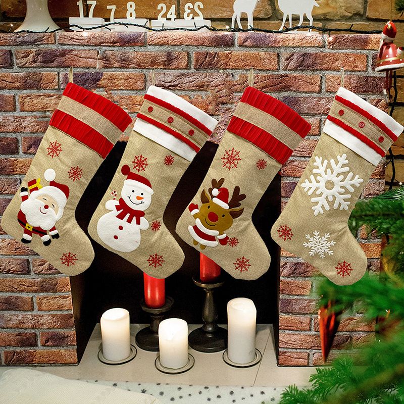 2022 New Decorative Supplies Christmas Hanging Ornaments Gift Bags Snowman Santa Reindeer Snowflake Burlap Christmas Stockings