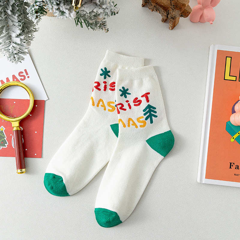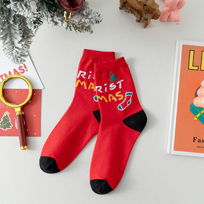Christmas stockings, children's mid tube socks, autumn and winter zodiac red socks, cute cartoon gingerbread man, snowman, Santa Claus socks