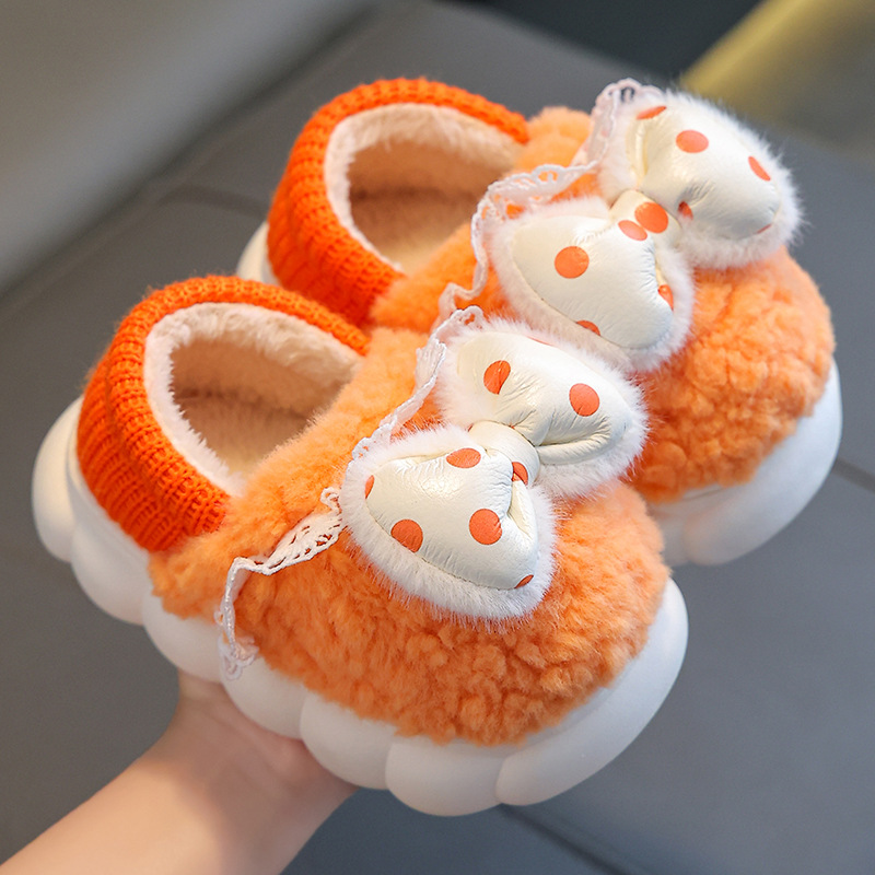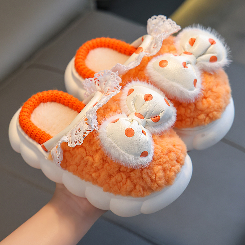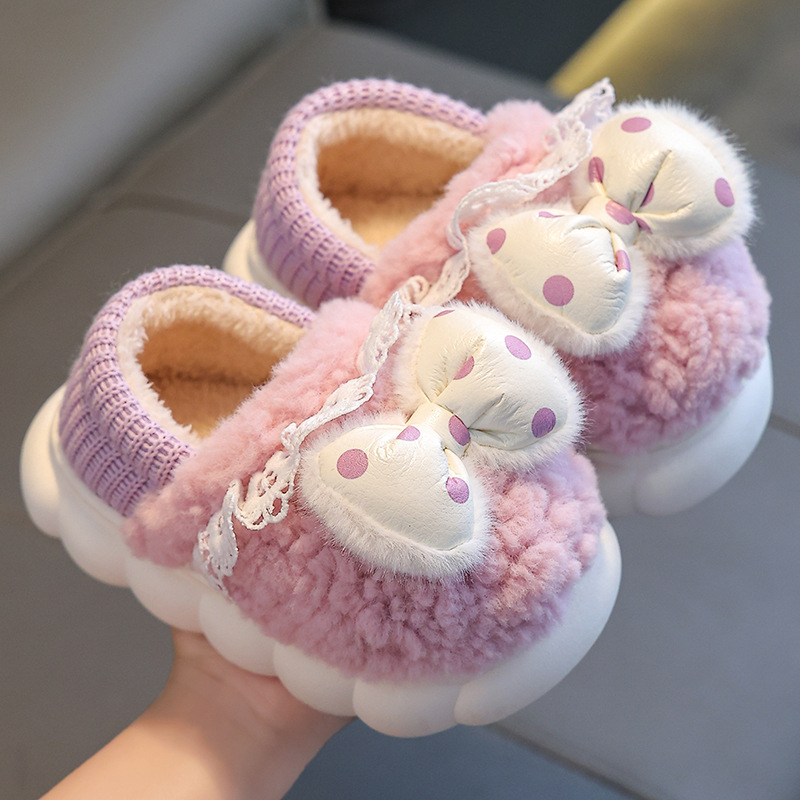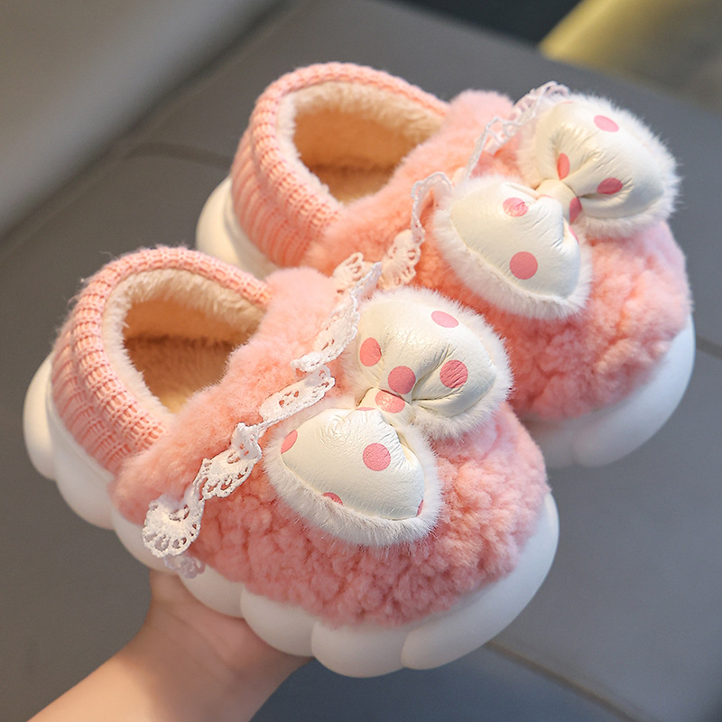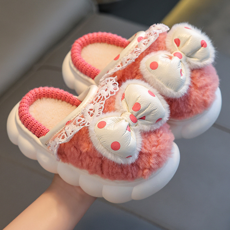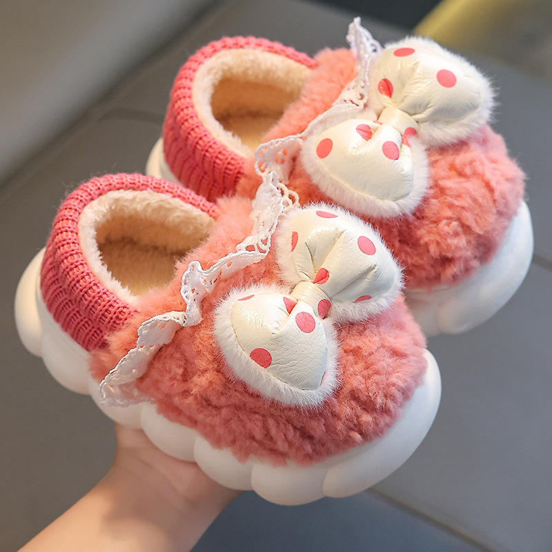 Winter children's cotton slippers for girls, princess warmth, plush bag, and parent-child big, medium, and small children's baby plush cotton slippers