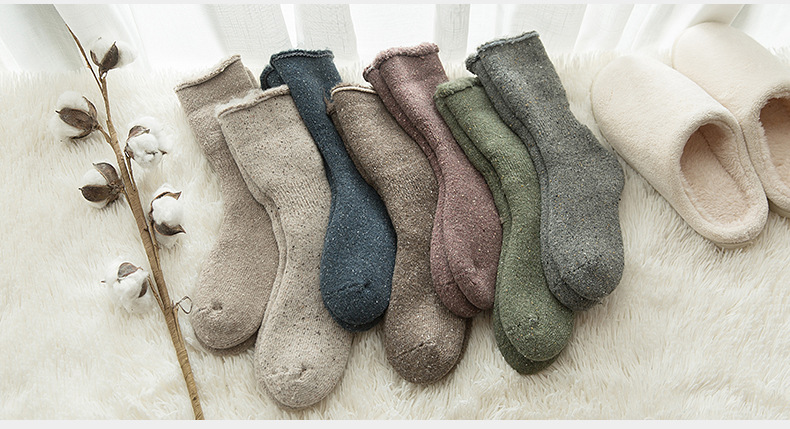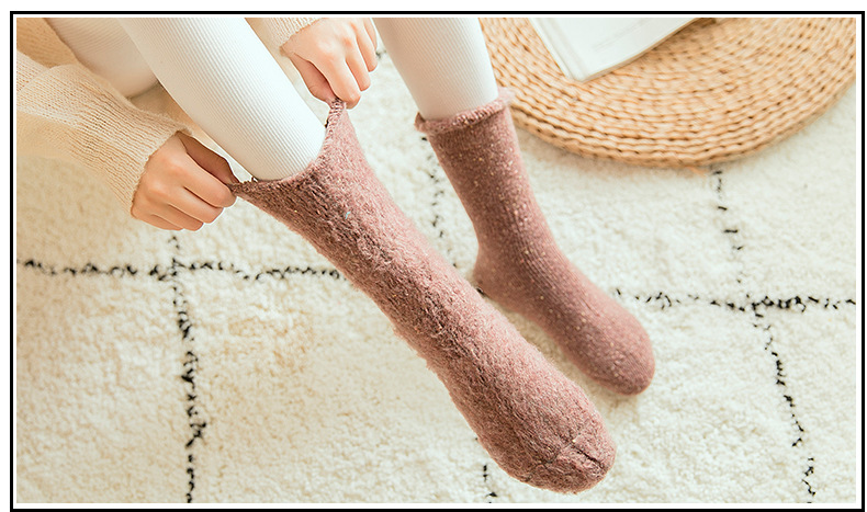 Wintersocken aus gebürsteter Wolle für Damen, mittellange Schlauchsocken, verdickte Schneesocken aus Samt, große Schlafsocken, Skisocken, Bodensocken