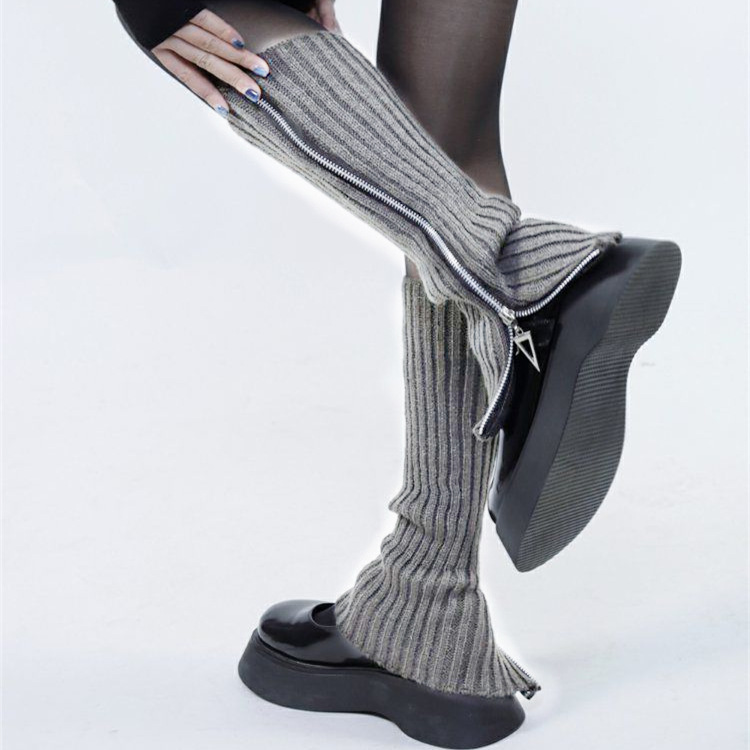 Wollsocke würzige Mädchen, neue lange Beinärmel für Herbst- und Winterfrauen, JK warmer, einfarbiger, vielseitiger Strickreißverschluss