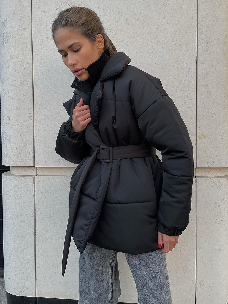Damenbekleidung Revers Baumwollmantel 2024 Winter neuer verdickter Baumwollmantel mit schlanker Taille einfarbiger Baumwollmantel mit Gürtel