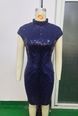 Damenbekleidung neue Damen Stehkragen Hüfte Pailletten Kleid Partykleid 6200