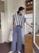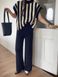 Zweiteiliger Anzug mit mittellangem Ausschnitt und gestreiftem Oberteil und weiten Hosen für Damen